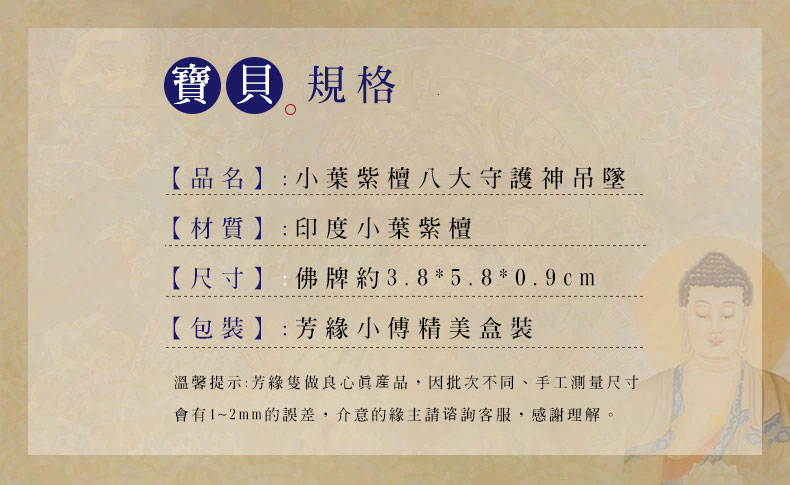 20分鐘前【芳緣大師親臨開光加持】十二生肖小葉紫檀本命守護神佛牌 主打祈求平安聚福,兼具旺運寓意,為正規加持的吉祥飾品 - 2入組-NT$1398「十二生肖小葉紫檀本命守護神佛牌 平安聚福 」