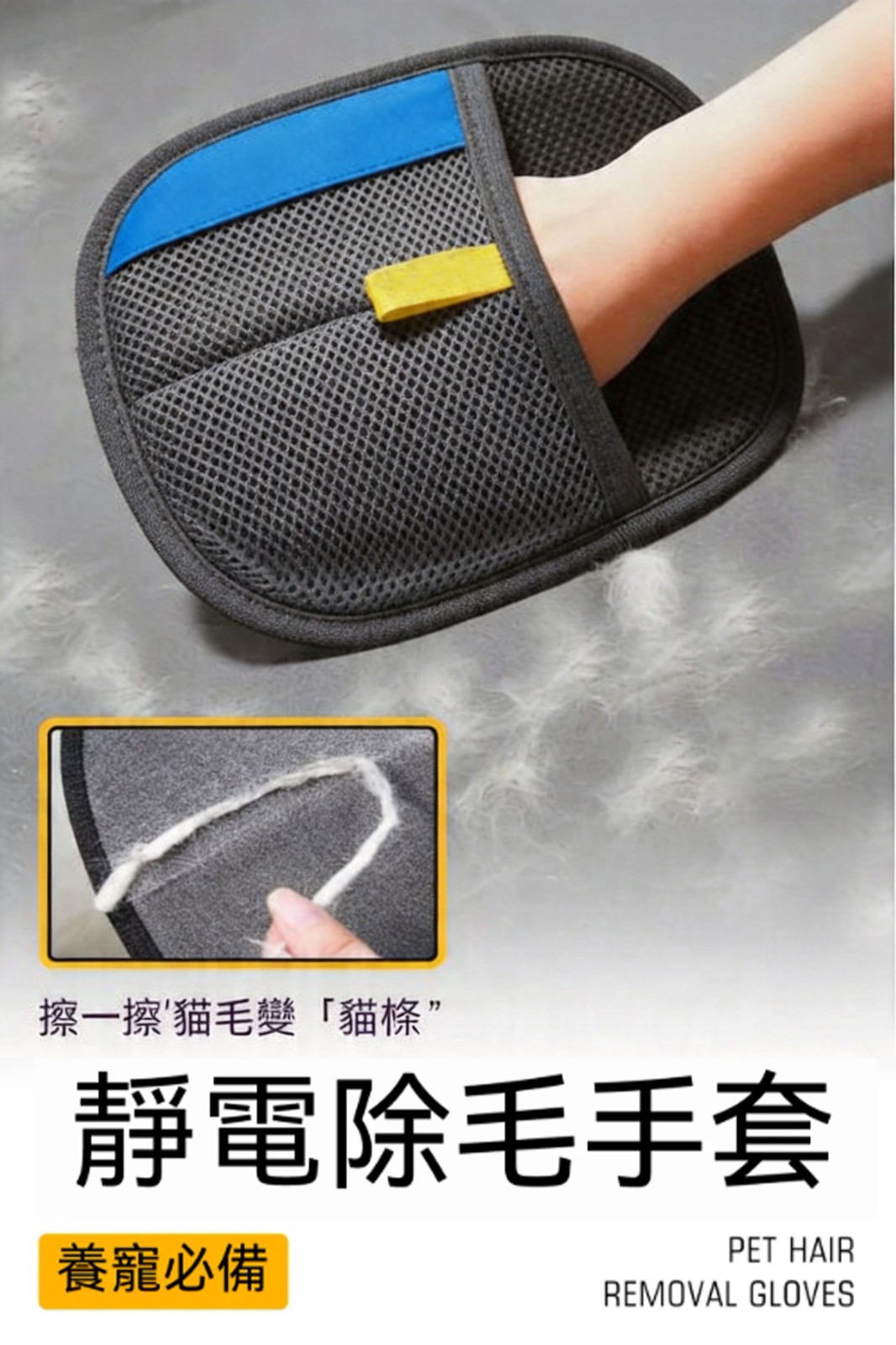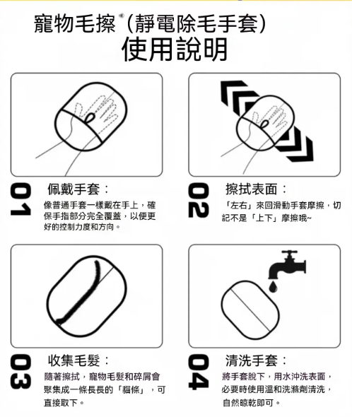 2分鐘前寵物靜電除毛手套【靜電吸附 除毛更輕鬆】,輕輕一戴,毛髮一抹即淨,讓家裡瞬間乾淨整潔! - 1入組【嘗鮮款】NT$999