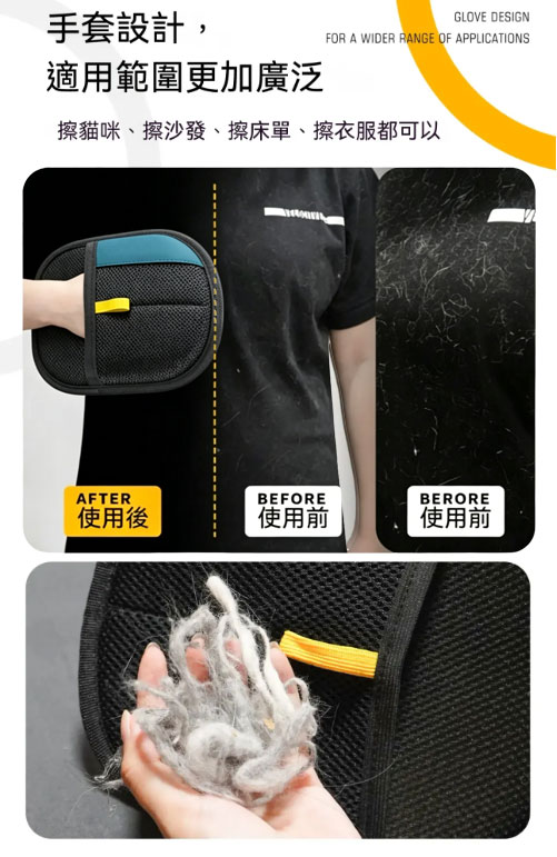 半小時前寵物靜電除毛手套【靜電吸附 除毛更輕鬆】,輕輕一戴,毛髮一抹即淨,讓家裡瞬間乾淨整潔! - 1入組【嘗鮮款】NT$999